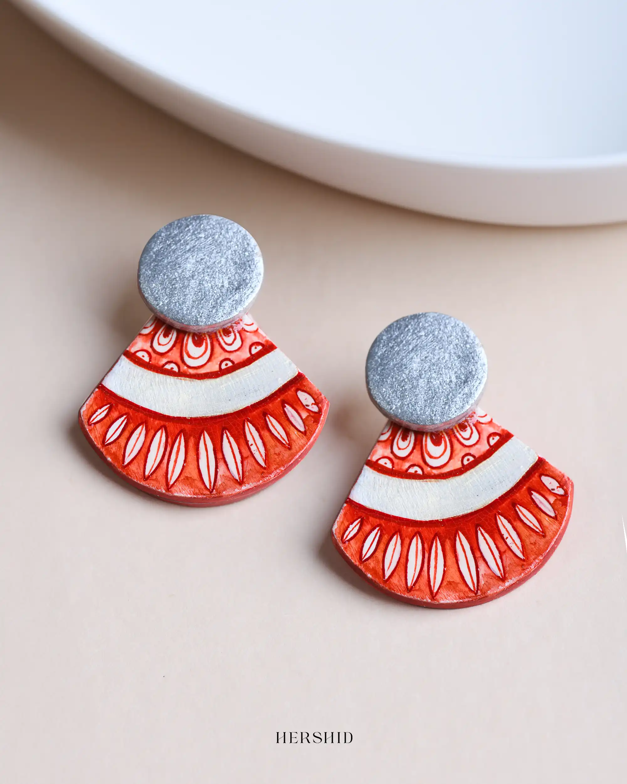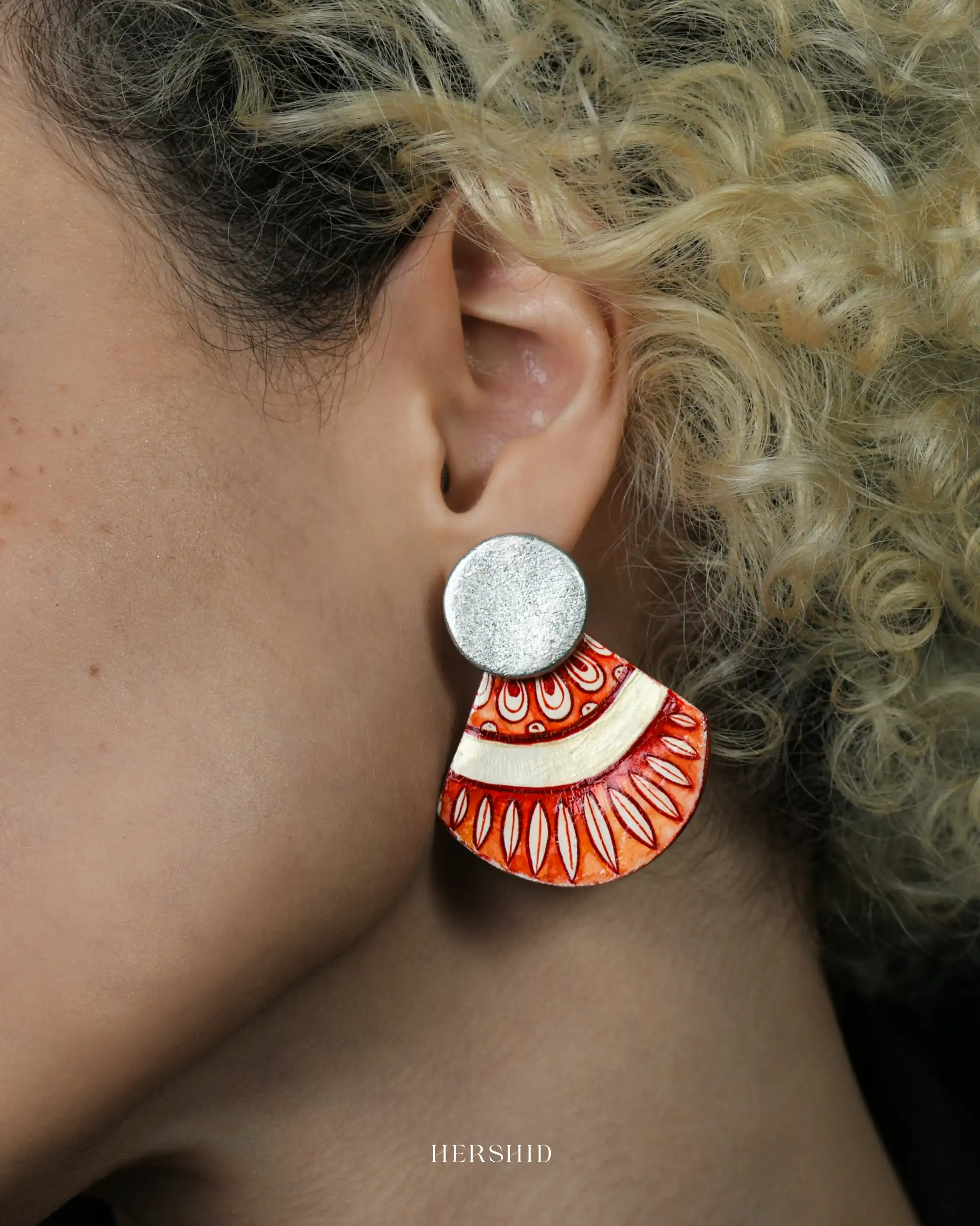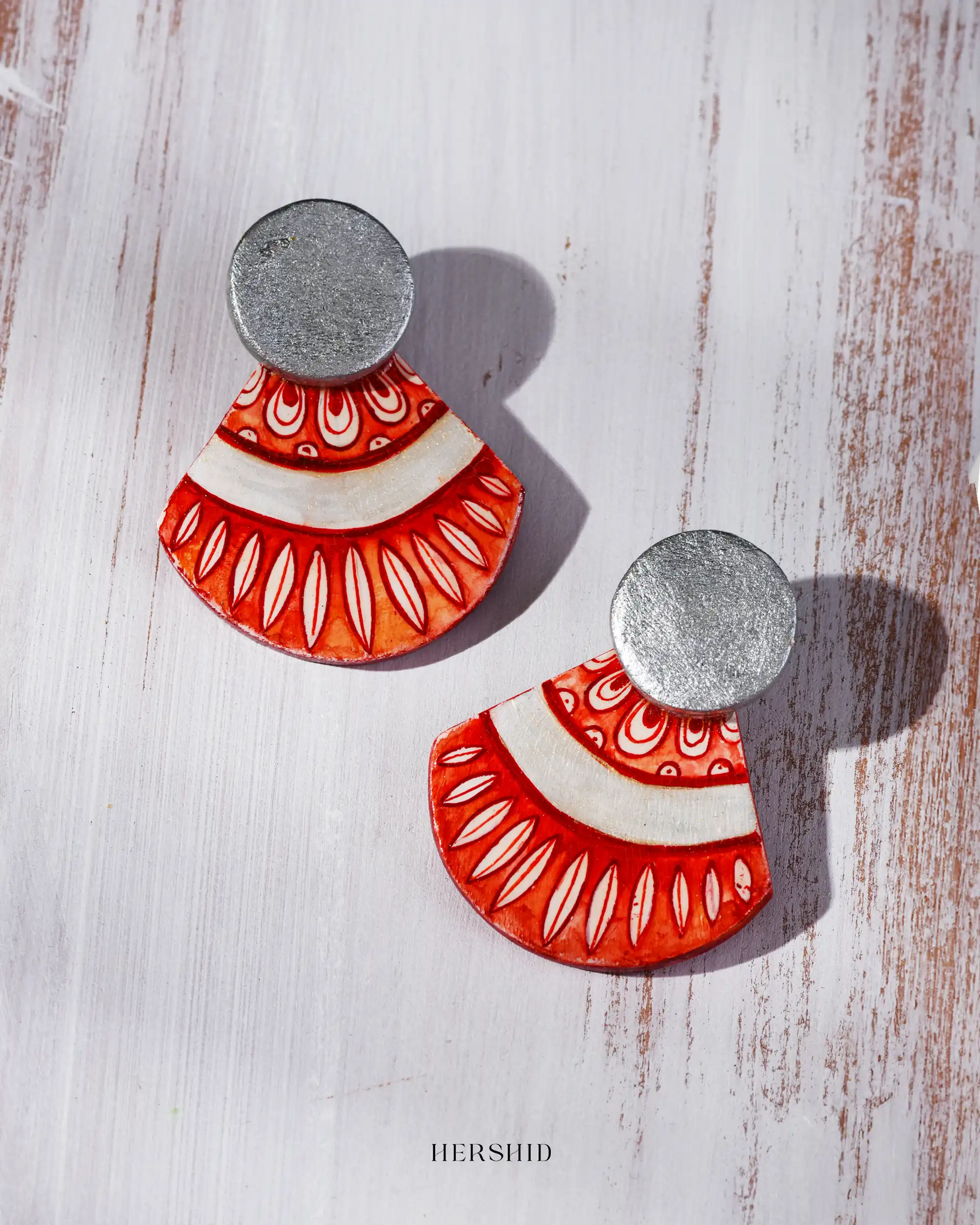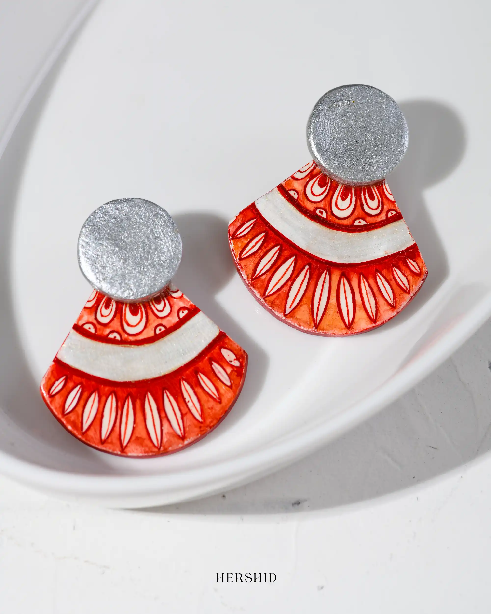 Dive into bold sophistication with the Wave Earrings! These hand-painted statement pieces feature vibrant red and white wave-inspired patterns, paired with a sleek silver-tone stud for a modern twist. Perfectly blending tradition and contemporary style, they radiate confidence and energy. Make every outfit unforgettable with these handcrafted gems from Hershid! Only one piece of this earring is available now!